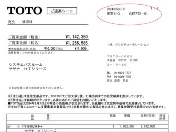 最終、お値引きして工事費用入れてお見積り書作成し、プランと合わせてお渡しします。