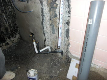 給水・給湯廻りのタイルを斫って、今度入れ替えるお風呂の