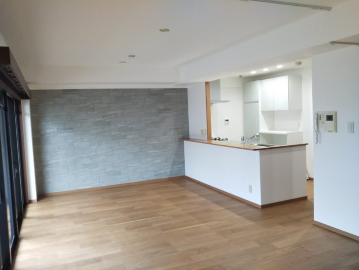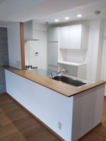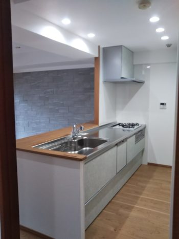 キッチンの吊戸を撤去し、照明をダウンライトにしましたので