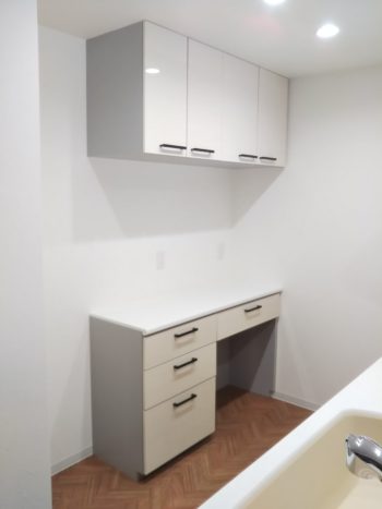 15センチサイズの収納と75センチサイズの洗面化粧台にしています。