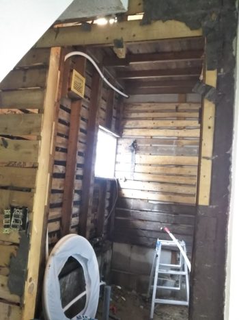 この壁に新しく洗面化粧台を取付することにしました(^^)