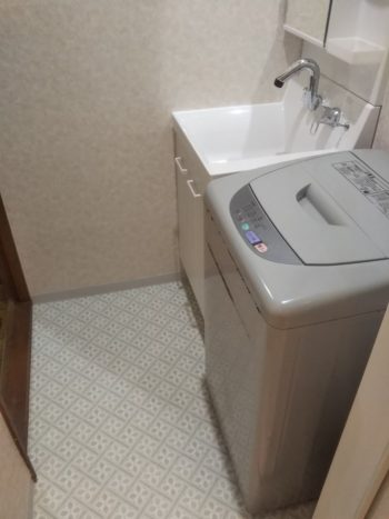 ギュギュっと洗面台と洗濯機がひしめき合っていました(;´・ω・)