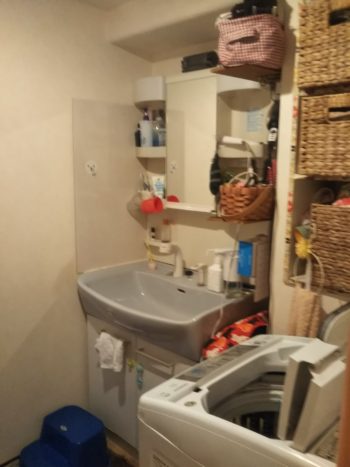 洗面台横のボコッと飛び出た収納スペースが便利なのか邪魔なのか。。。