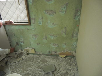 今回はカビが発生してしまった壁材(プラスターボード)のめくり貼替