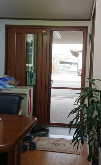 今日 たまたま玄関の扉(引き違い戸)に 網戸を取り付ける