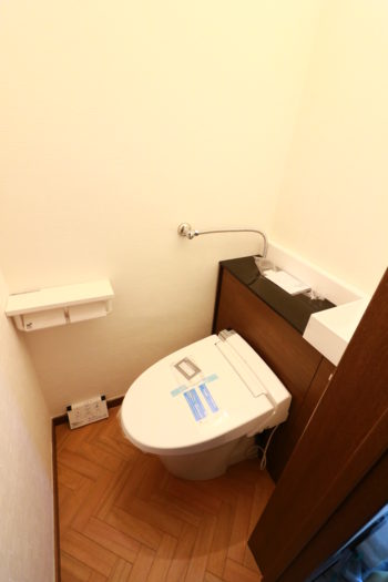 トイレを広げることも難しく、給水を移設させることも難しいトイレ室でしたので