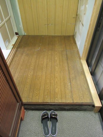 玄関は既存のCFを剥がしモルタルで新しい下地造り