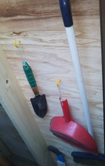 為 二重壁にした壁の中を外側から収納に使ってます。