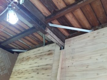 合板を貼りました。耐震ボードも一部貼っています。↓