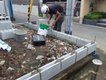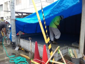 コンクリート工事 小雨の中の土間コン打ちとなりました。