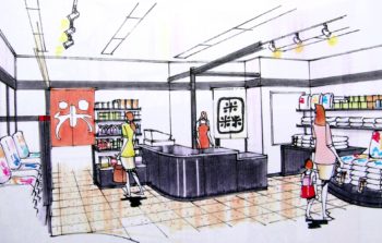 お米屋さんの模型(入口のイメージ)