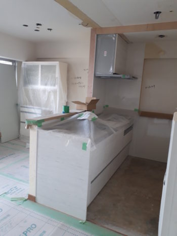 吊戸を撤去し、リビングとキッチンの照明をダウンライトにしますので