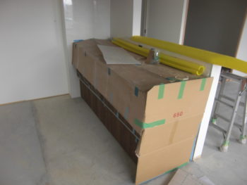 キッチン設置完了(養生された状態でよく仕上がりが分かりませんが…)