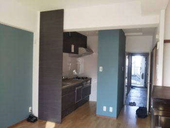 キッチンの正面の青い壁で囲われている中には。。。