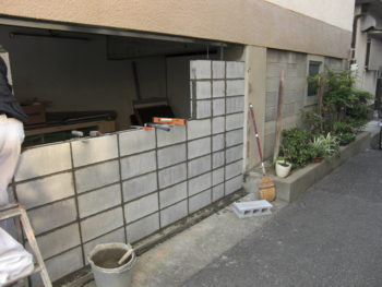 施行中(ブロック壁)