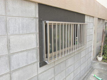 ※引き違いの窓(防犯用に縦格子付)を取付完了。
