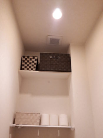造り付けの収納棚と突っ張り棒の物置棚をお使いでした。