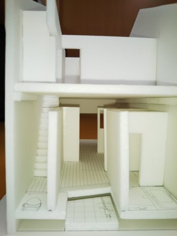 久々に簡易な建物模型をつくってみました。素材はスチレンボードです。