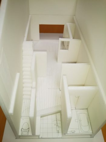 て模型をつくってみました。スチレンボードは安価でモノトーンなのがいいで