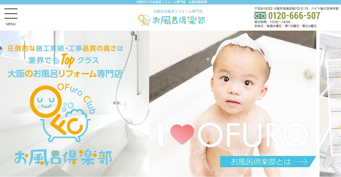 お風呂倶楽部は、大阪の風呂リフォーム専門店です。施工実績が多く、工事の品質は業界でもTOPクラスです。打ち合わせの際に「工事の見える化パンフレット」で説明するので、どのようなフローで工事が進んでいくかがリフォームに関する知識がなくてもわかりやすいです。