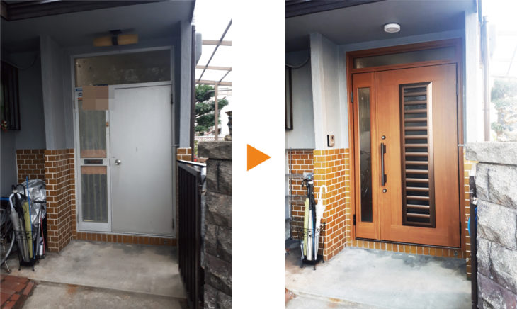 | 施工内容 | 戸建て 玄関開き戸取替リフォーム |