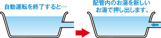 おいだき配管内の残り湯を流しだす配管クリーン機能で、水アカの発生を軽減します。