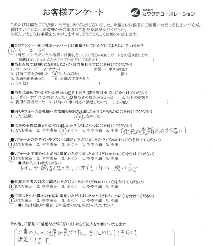 羽曳野市 T様の声 トイレリフォーム