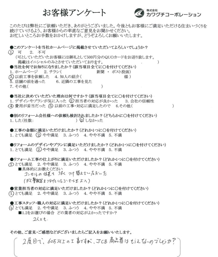 大阪市淀川区 S様の声 キッチンリフォーム