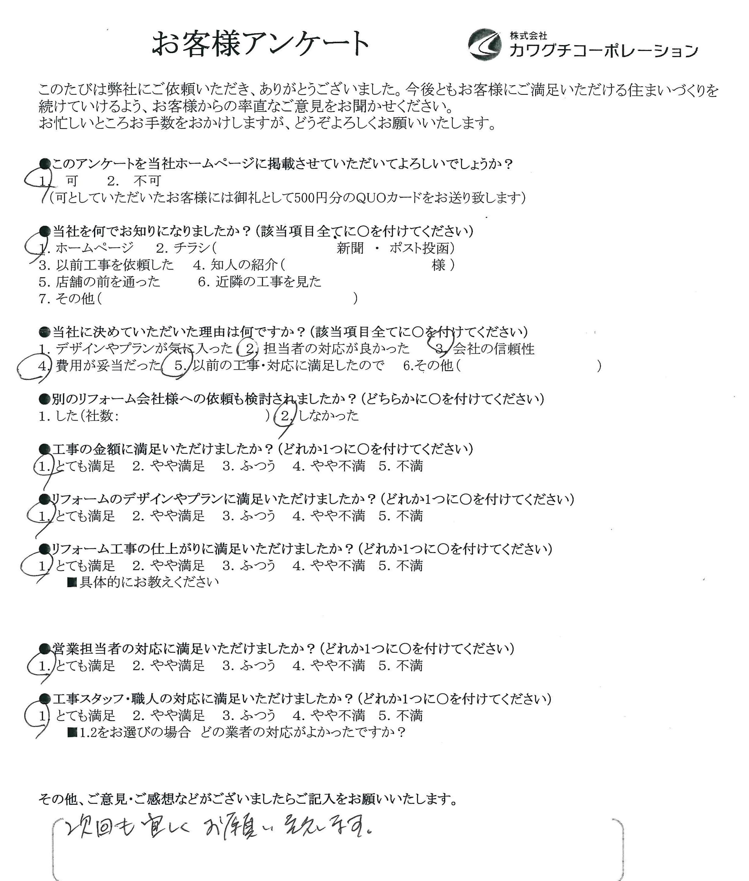 以前の工事・対応に満足したので