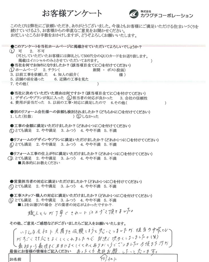 リフォーム工事の仕上がりに満足いただけましたか?