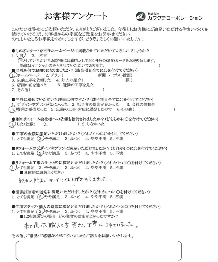 リフォーム工事の仕上がりに満足いただけましたか?