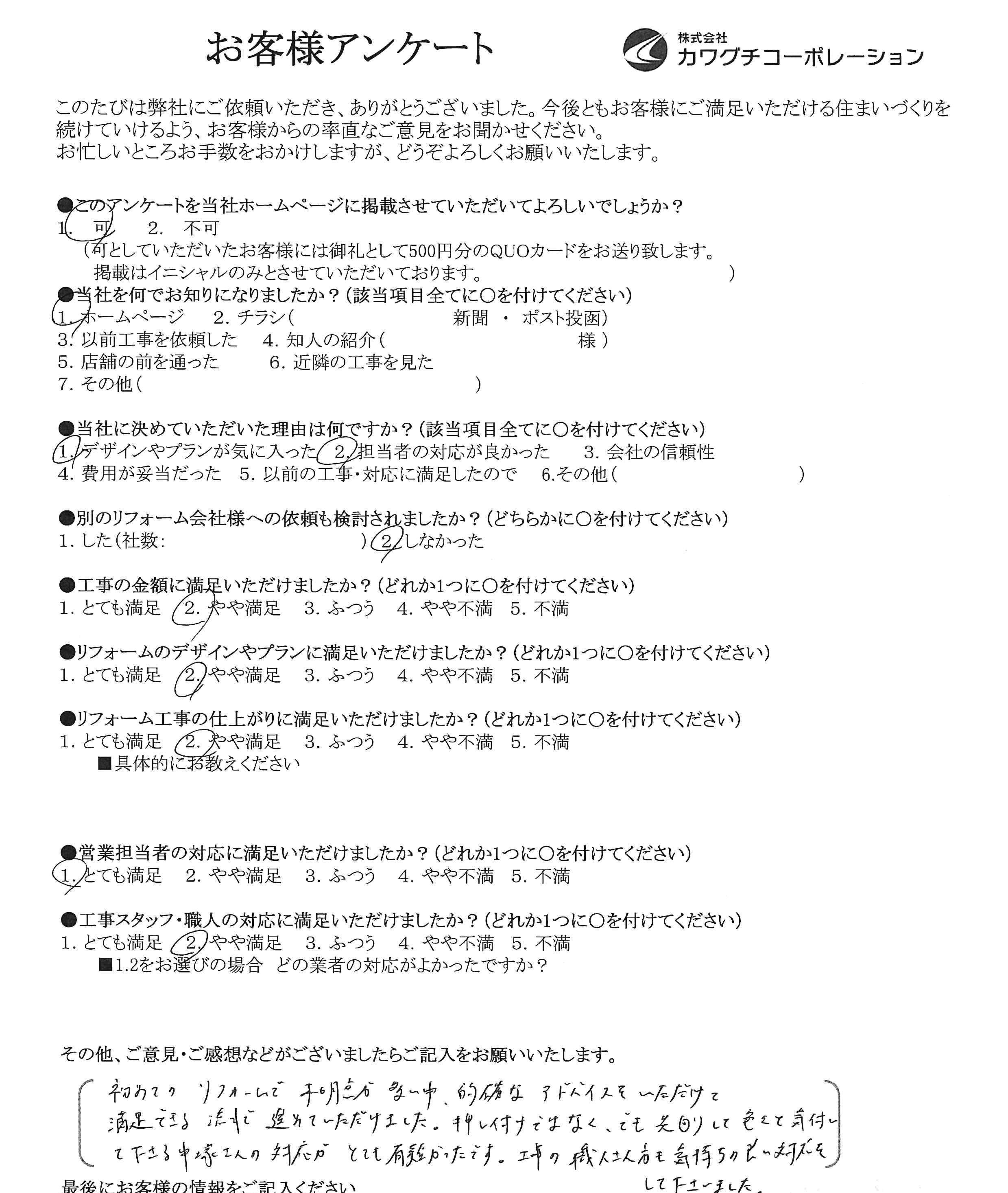 初めてのリフォームで不明点が多い中、的確なアドバイスをいただけて満足できる流れで進めていただけました。