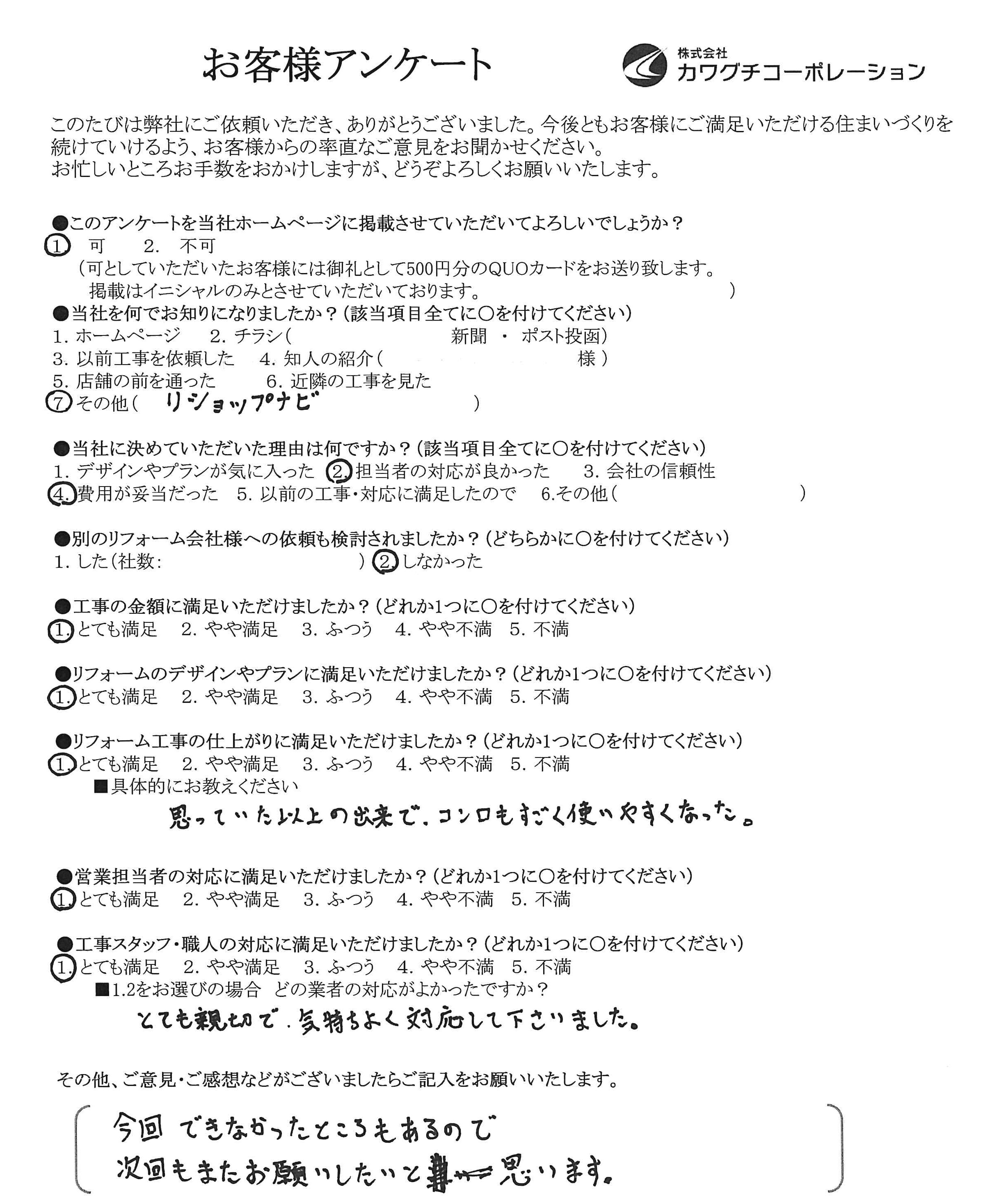 東大阪市 M様の声 水まわり交換、二部屋を一つの大きな部屋にリフォーム