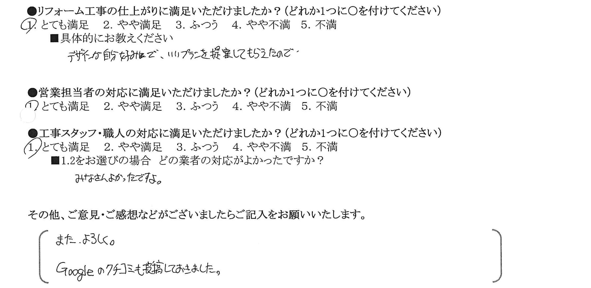 お好みのイメージやお困りごとをわかりやすくお話いただけましたので、商品や施工内容のご提案がスムーズにできました。日々のお悩みが少しでも解消でき、またお喜びの声を頂戴しまして、職人も私もとてもうれしく思っています。