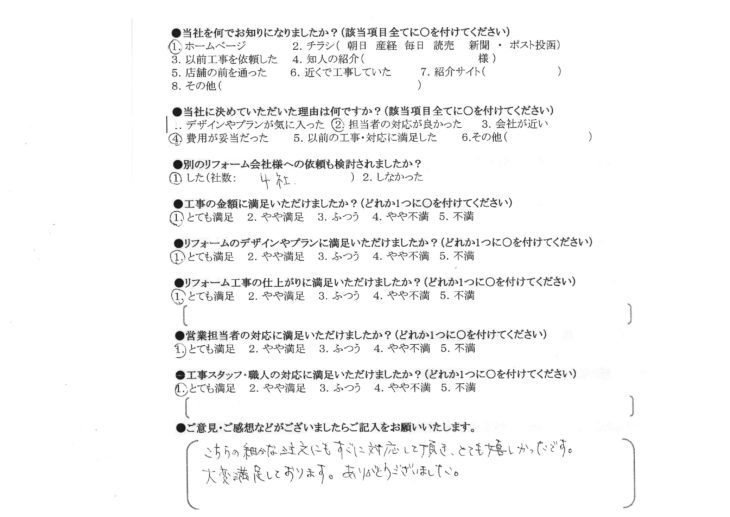 HOMEお客様の声淀川区 H様の声 洗面化粧台交換 淀川区 H様の声 洗面化粧台交換 当社に決めていただいた理由は何ですか? 担当者の対応が良かった。費用が妥当だった。 リフォームのデザインやプランに満足いただけましたか? とても満足 リフォーム工事の仕上がりに満足いただけましたか? とても満足 営業担当者の対応に満足いただけましたか? とても満足 工事スタッフ・職人の対応に満足いただけましたか? とても満足 実際の施工事例はこちら お客様の声一覧はこちら ライフテックについて 会社案内代表挨拶会社概要企業理念 はじめにお読みください 施工事例 施工事例一覧 戸建て マンション 全面改修 水まわり 洗面 キッチン 浴室 トイレ 内装 間取り変更 洋室改修 和室改修 その他 バルコニー・ベランダ 玄関 外壁・屋根 窓・サッシ お客様の声 お客様の声一覧 イベント情報 イベント情報一覧 カテゴリーなし お役立ち情報 お役立ちブログ 現場ブログ よくあるご質問 リフォームの流れ LINEで簡単見積もり ユニットバスキャンペーン 玄関ドアリフォーム 在来工法とカバー工法の違いをわかりやすく解説します 建具・家具工事 補修工事(リペア) 荷揚げ(揚重)工事 お問い合わせ お問い合わせ 無料お見積もり 資料請求 CONTACTお問い合わせ トップへ戻る 会社案内 会社案内代表挨拶会社概要企業理念 はじめにお読みください 施工事例 施工事例一覧 戸建て マンション 全面改修 水まわり 洗面 キッチン 浴室 トイレ 内装 間取り変更 洋室改修 和室改修 その他 バルコニー・ベランダ 玄関 外壁・屋根 窓・サッシ お客様の声 お客様の声一覧 お得なリフォーム情報 価格表 一覧お得なキッチンお得なトイレお得なお風呂お得な洗面化粧台 お役立ち情報 お役立ちブログ現場ブログよくあるご質問リフォームの流れLINEで簡単見積もりユニットバスキャンペーン玄関ドアリフォーム 在来工法とカバー工法の違いをわかりやすく解説します建具・家具工事補修工事(リペア)荷揚げ(揚重)工事 お問い合わせ お問い合わせ無料お見積もり資料請求 Copyright © 2018 ライフテック All Rights Reserved.