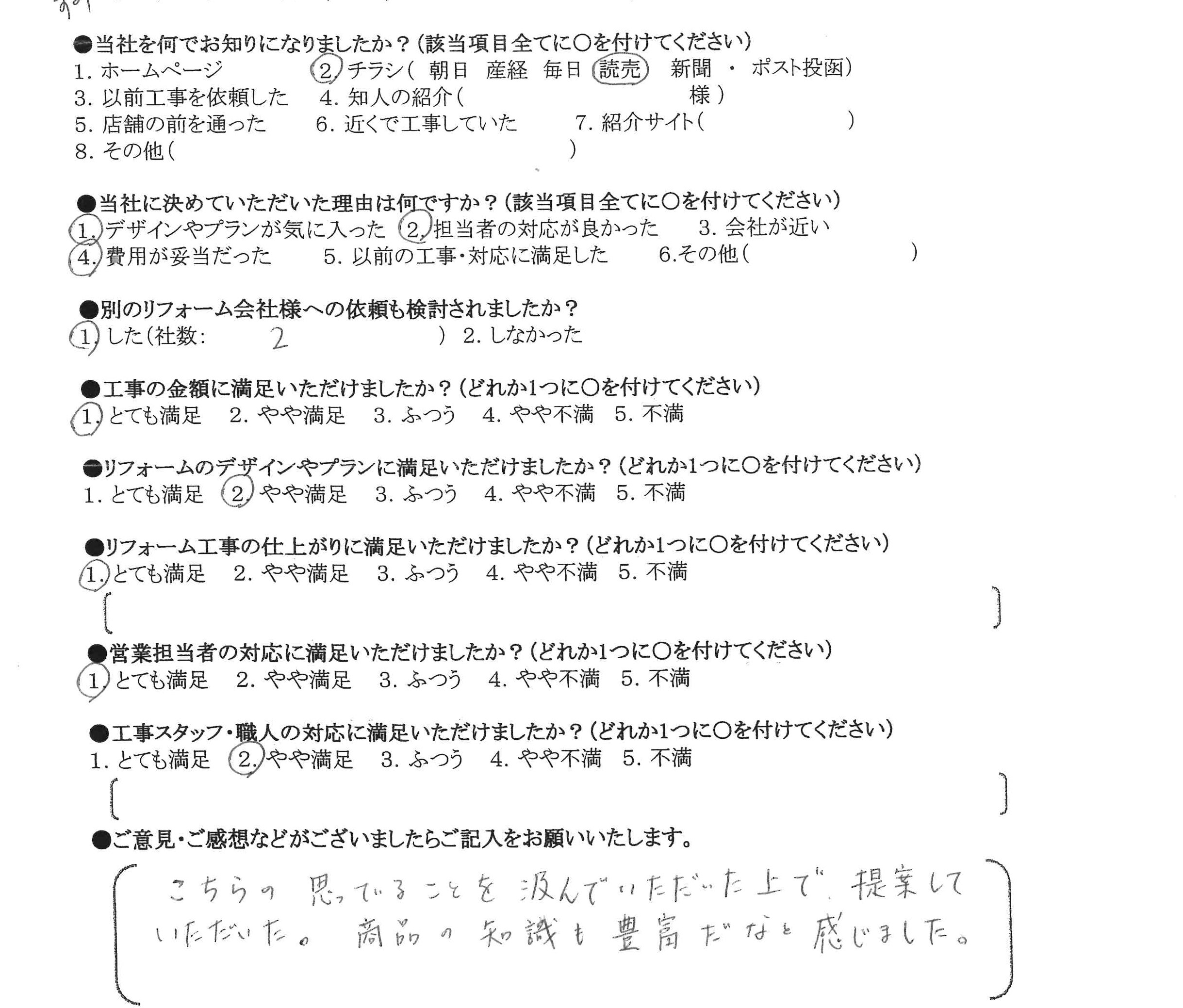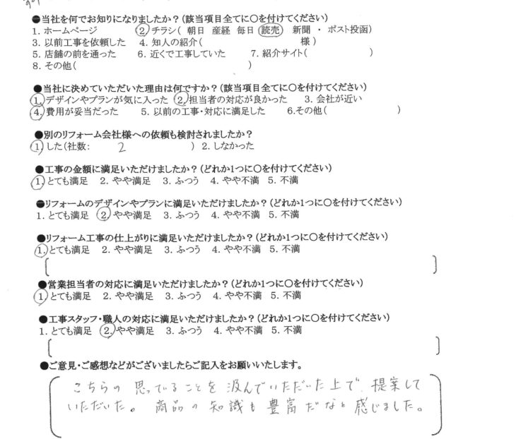 HOMEお客様の声守口市 K様の声 和室・子供部屋改修 守口市 K様の声 和室・子供部屋改修 当社に決めていただいた理由は何ですか? 担当者の対応が良かった。費用が妥当だった。 リフォームのデザインやプランに満足いただけましたか? とても満足 リフォーム工事の仕上がりに満足いただけましたか? とても満足 営業担当者の対応に満足いただけましたか? とても満足 工事スタッフ・職人の対応に満足いただけましたか? やや満足 お客様の声一覧はこちら ライフテックについて 会社案内代表挨拶会社概要企業理念 はじめにお読みください 施工事例 施工事例一覧 戸建て マンション 全面改修 水まわり 洗面 キッチン 浴室 トイレ 内装 間取り変更 洋室改修 和室改修 その他 バルコニー・ベランダ 玄関 外壁・屋根 窓・サッシ お客様の声 お客様の声一覧 イベント情報 イベント情報一覧 カテゴリーなし お役立ち情報 お役立ちブログ 現場ブログ よくあるご質問 リフォームの流れ LINEで簡単見積もり ユニットバスキャンペーン 玄関ドアリフォーム 在来工法とカバー工法の違いをわかりやすく解説します 建具・家具工事 補修工事(リペア) 荷揚げ(揚重)工事 お問い合わせ お問い合わせ 無料お見積もり 資料請求 CONTACTお問い合わせ トップへ戻る 会社案内 会社案内代表挨拶会社概要企業理念 はじめにお読みください 施工事例 施工事例一覧 戸建て マンション 全面改修 水まわり 洗面 キッチン 浴室 トイレ 内装 間取り変更 洋室改修 和室改修 その他 バルコニー・ベランダ 玄関 外壁・屋根 窓・サッシ お客様の声 お客様の声一覧 お得なリフォーム情報 価格表 一覧お得なキッチンお得なトイレお得なお風呂お得な洗面化粧台 お役立ち情報 お役立ちブログ現場ブログよくあるご質問リフォームの流れLINEで簡単見積もりユニットバスキャンペーン玄関ドアリフォーム 在来工法とカバー工法の違いをわかりやすく解説します建具・家具工事補修工事(リペア)荷揚げ(揚重)工事 お問い合わせ お問い合わせ無料お見積もり資料請求 Copyright © 2018 ライフテック All Rights Reserved.