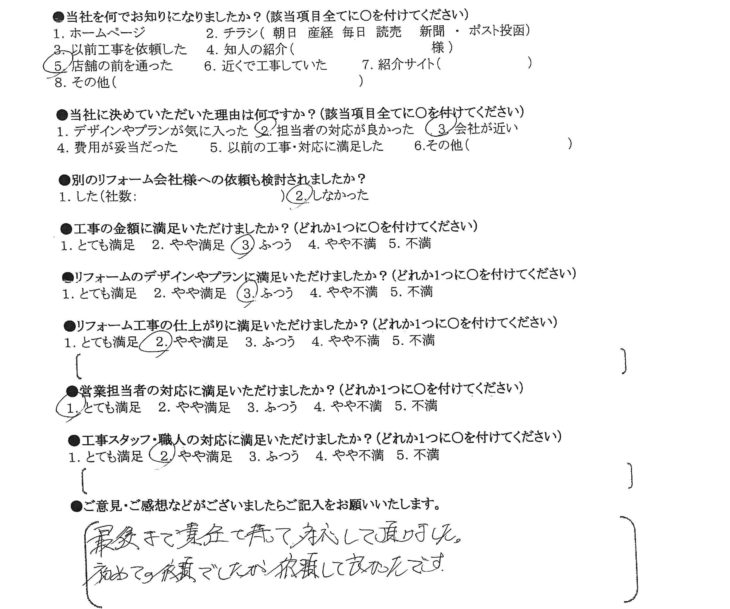 HOMEお客様の声守口市 H様の声 子供部屋間仕切り壁の増設 守口市 H様の声 子供部屋間仕切り壁の増設 当社に決めていただいた理由は何ですか? 担当者の対応が良かった。会社が近い。 リフォームのデザインやプランに満足いただけましたか? ふつう リフォーム工事の仕上がりに満足いただけましたか? やや満足 営業担当者の対応に満足いただけましたか? とても満足 工事スタッフ・職人の対応に満足いただけましたか? やや満足 お客様の声一覧はこちら ライフテックについて 会社案内代表挨拶会社概要企業理念 はじめにお読みください 施工事例 施工事例一覧 戸建て マンション 全面改修 水まわり 洗面 キッチン 浴室 トイレ 内装 間取り変更 洋室改修 和室改修 その他 バルコニー・ベランダ 玄関 外壁・屋根 窓・サッシ お客様の声 お客様の声一覧 イベント情報 イベント情報一覧 カテゴリーなし お役立ち情報 お役立ちブログ 現場ブログ よくあるご質問 リフォームの流れ LINEで簡単見積もり ユニットバスキャンペーン 玄関ドアリフォーム 在来工法とカバー工法の違いをわかりやすく解説します 建具・家具工事 補修工事(リペア) 荷揚げ(揚重)工事 お問い合わせ お問い合わせ 無料お見積もり 資料請求 CONTACTお問い合わせ トップへ戻る 会社案内 会社案内代表挨拶会社概要企業理念 はじめにお読みください 施工事例 施工事例一覧 戸建て マンション 全面改修 水まわり 洗面 キッチン 浴室 トイレ 内装 間取り変更 洋室改修 和室改修 その他 バルコニー・ベランダ 玄関 外壁・屋根 窓・サッシ お客様の声 お客様の声一覧 お得なリフォーム情報 価格表 一覧お得なキッチンお得なトイレお得なお風呂お得な洗面化粧台 お役立ち情報 お役立ちブログ現場ブログよくあるご質問リフォームの流れLINEで簡単見積もりユニットバスキャンペーン玄関ドアリフォーム 在来工法とカバー工法の違いをわかりやすく解説します建具・家具工事補修工事(リペア)荷揚げ(揚重)工事 お問い合わせ お問い合わせ無料お見積もり資料請求 Copyright © 2018 ライフテック All Rights Reserved.