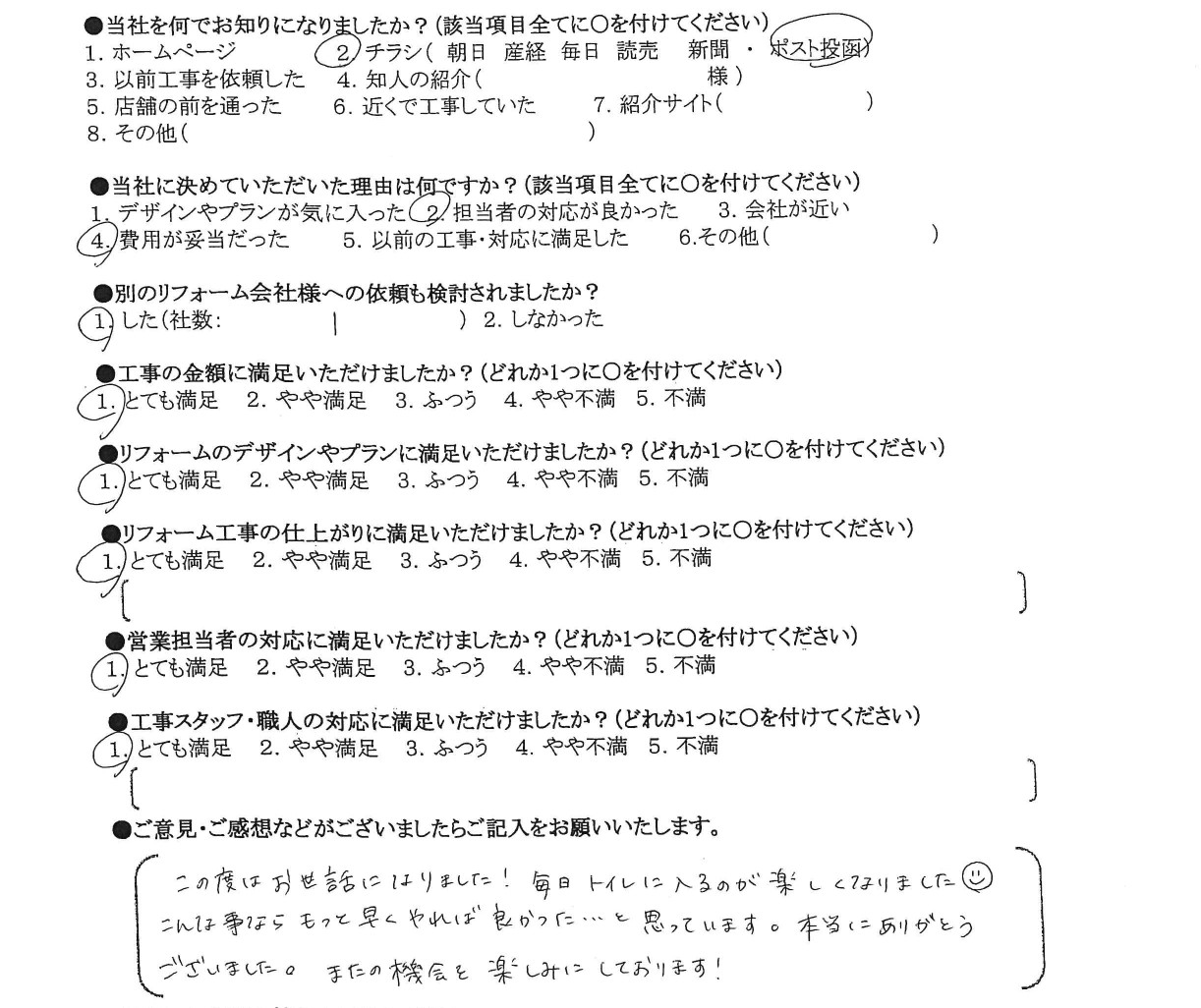 HOMEお客様の声守口市 K様の声 トイレ・コンロ交換 守口市 K様の声 トイレ・コンロ交換 当社に決めていただいた理由は何ですか? 担当者の対応が良かった、費用が妥当だった リフォームのデザインやプランに満足いただけましたか? とても満足 リフォーム工事の仕上がりに満足いただけましたか? とても満足 営業担当者の対応に満足いただけましたか? とても満足 工事スタッフ・職人の対応に満足いただけましたか? とても満足 お客様の声一覧はこちら ライフテックについて 会社案内代表挨拶会社概要企業理念 はじめにお読みください 施工事例 施工事例一覧 戸建て マンション 全面改修 水まわり 洗面 キッチン 浴室 トイレ 内装 間取り変更 洋室改修 和室改修 その他 バルコニー・ベランダ 玄関 外壁・屋根 窓・サッシ お客様の声 お客様の声一覧 イベント情報 イベント情報一覧 カテゴリーなし お役立ち情報 お役立ちブログ 現場ブログ よくあるご質問 リフォームの流れ LINEで簡単見積もり ユニットバスキャンペーン 玄関ドアリフォーム 在来工法とカバー工法の違いをわかりやすく解説します 建具・家具工事 補修工事(リペア) 荷揚げ(揚重)工事 お問い合わせ お問い合わせ 無料お見積もり 資料請求 CONTACTお問い合わせ トップへ戻る 会社案内 会社案内代表挨拶会社概要企業理念 はじめにお読みください 施工事例 施工事例一覧 戸建て マンション 全面改修 水まわり 洗面 キッチン 浴室 トイレ 内装 間取り変更 洋室改修 和室改修 その他 バルコニー・ベランダ 玄関 外壁・屋根 窓・サッシ お客様の声 お客様の声一覧 お得なリフォーム情報 価格表 一覧お得なキッチンお得なトイレお得なお風呂お得な洗面化粧台 お役立ち情報 お役立ちブログ現場ブログよくあるご質問リフォームの流れLINEで簡単見積もりユニットバスキャンペーン玄関ドアリフォーム 在来工法とカバー工法の違いをわかりやすく解説します建具・家具工事補修工事(リペア)荷揚げ(揚重)工事 お問い合わせ お問い合わせ無料お見積もり資料請求 Copyright © 2018 ライフテック All Rights Reserved.