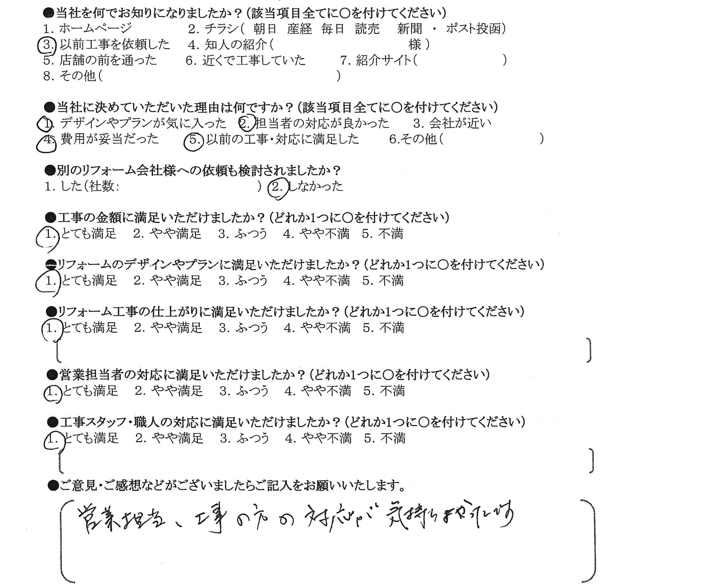HOMEお客様の声門真市 T様の声 ポスト取付 門真市 T様の声 ポスト取付 当社に決めていただいた理由は何ですか? 担当者の対応が良かった、以前んお工事・対応に満足した。 リフォームのデザインやプランに満足いただけましたか? とても満足 リフォーム工事の仕上がりに満足いただけましたか? とても満足 営業担当者の対応に満足いただけましたか? とても満足 工事スタッフ・職人の対応に満足いただけましたか? とても満足 お客様の声一覧はこちら ライフテックについて 会社案内代表挨拶会社概要企業理念 はじめにお読みください 施工事例 施工事例一覧 戸建て マンション 全面改修 水まわり 洗面 キッチン 浴室 トイレ 内装 間取り変更 洋室改修 和室改修 その他 バルコニー・ベランダ 玄関 外壁・屋根 窓・サッシ お客様の声 お客様の声一覧 イベント情報 イベント情報一覧 カテゴリーなし お役立ち情報 お役立ちブログ 現場ブログ よくあるご質問 リフォームの流れ LINEで簡単見積もり ユニットバスキャンペーン 玄関ドアリフォーム 在来工法とカバー工法の違いをわかりやすく解説します 建具・家具工事 補修工事(リペア) 荷揚げ(揚重)工事 お問い合わせ お問い合わせ 無料お見積もり 資料請求 CONTACTお問い合わせ トップへ戻る 会社案内 会社案内代表挨拶会社概要企業理念 はじめにお読みください 施工事例 施工事例一覧 戸建て マンション 全面改修 水まわり 洗面 キッチン 浴室 トイレ 内装 間取り変更 洋室改修 和室改修 その他 バルコニー・ベランダ 玄関 外壁・屋根 窓・サッシ お客様の声 お客様の声一覧 お得なリフォーム情報 価格表 一覧お得なキッチンお得なトイレお得なお風呂お得な洗面化粧台 お役立ち情報 お役立ちブログ現場ブログよくあるご質問リフォームの流れLINEで簡単見積もりユニットバスキャンペーン玄関ドアリフォーム 在来工法とカバー工法の違いをわかりやすく解説します建具・家具工事補修工事(リペア)荷揚げ(揚重)工事 お問い合わせ お問い合わせ無料お見積もり資料請求 Copyright © 2018 ライフテック All Rights Reserved.
