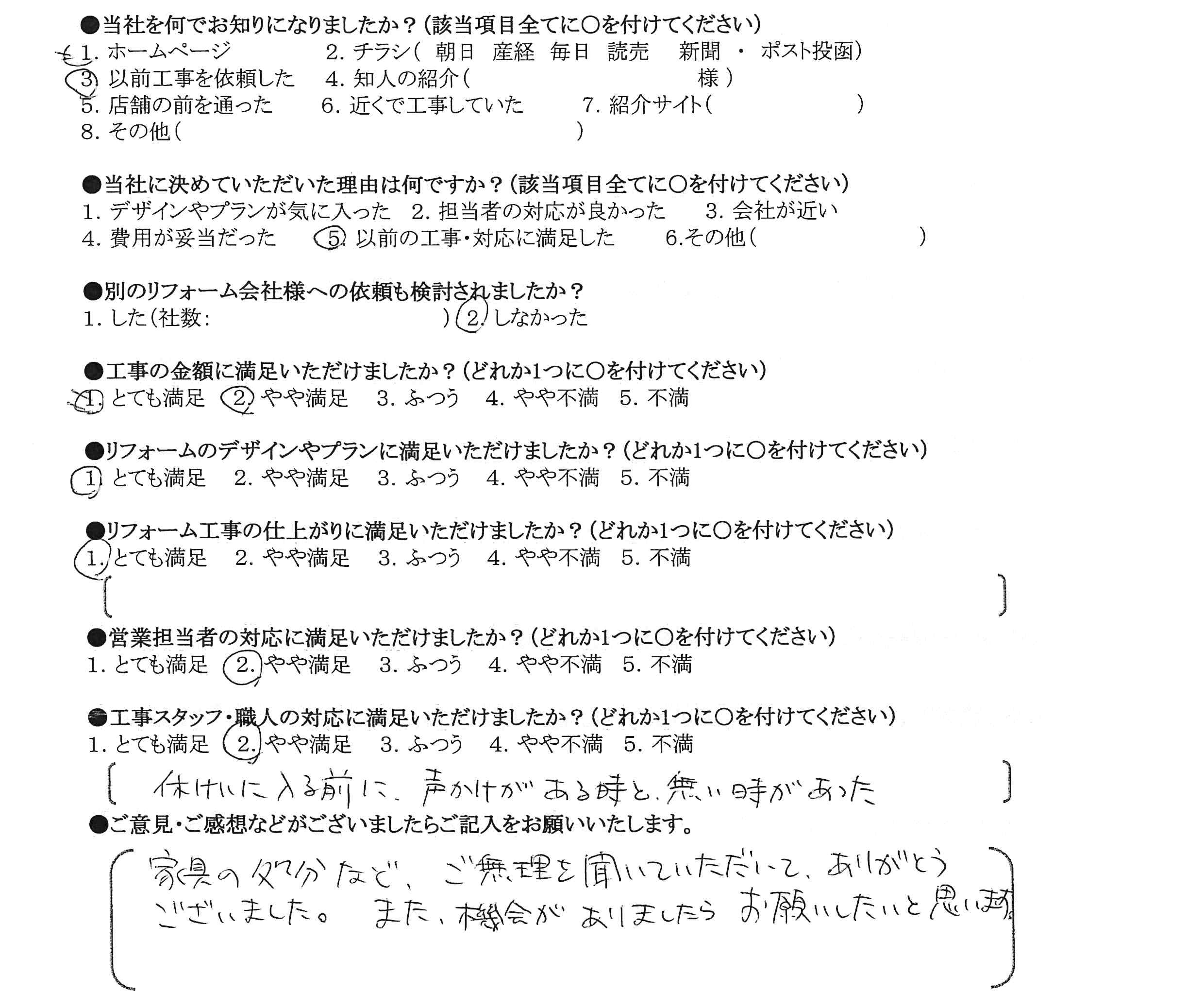 HOMEお客様の声西区 Y様の声 壁面収納・カップボード据付工事 西区 Y様の声 壁面収納・カップボード据付工事 当社に決めていただいた理由は何ですか? 以前の工事・対応に満足した。 リフォームのデザインやプランに満足いただけましたか? とても満足 リフォーム工事の仕上がりに満足いただけましたか? とても満足 営業担当者の対応に満足いただけましたか? やや満足 工事スタッフ・職人の対応に満足いただけましたか? やや満足 お客様の声一覧はこちら ライフテックについて 会社案内代表挨拶会社概要企業理念 はじめにお読みください 施工事例 施工事例一覧 戸建て マンション 全面改修 水まわり 洗面 キッチン 浴室 トイレ 内装 間取り変更 洋室改修 和室改修 その他 バルコニー・ベランダ 玄関 外壁・屋根 窓・サッシ お客様の声 お客様の声一覧 イベント情報 イベント情報一覧 カテゴリーなし お役立ち情報 お役立ちブログ 現場ブログ よくあるご質問 リフォームの流れ LINEで簡単見積もり ユニットバスキャンペーン 玄関ドアリフォーム 在来工法とカバー工法の違いをわかりやすく解説します 建具・家具工事 補修工事(リペア) 荷揚げ(揚重)工事 お問い合わせ お問い合わせ 無料お見積もり 資料請求 CONTACTお問い合わせ トップへ戻る 会社案内 会社案内代表挨拶会社概要企業理念 はじめにお読みください 施工事例 施工事例一覧 戸建て マンション 全面改修 水まわり 洗面 キッチン 浴室 トイレ 内装 間取り変更 洋室改修 和室改修 その他 バルコニー・ベランダ 玄関 外壁・屋根 窓・サッシ お客様の声 お客様の声一覧 お得なリフォーム情報 価格表 一覧お得なキッチンお得なトイレお得なお風呂お得な洗面化粧台 お役立ち情報 お役立ちブログ現場ブログよくあるご質問リフォームの流れLINEで簡単見積もりユニットバスキャンペーン玄関ドアリフォーム 在来工法とカバー工法の違いをわかりやすく解説します建具・家具工事補修工事(リペア)荷揚げ(揚重)工事 お問い合わせ お問い合わせ無料お見積もり資料請求 Copyright © 2018 ライフテック All Rights Reserved.