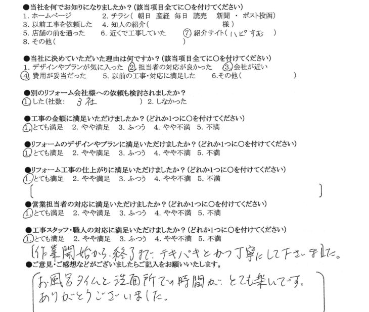 リフォーム工事の仕上がりに満足いただけましたか?