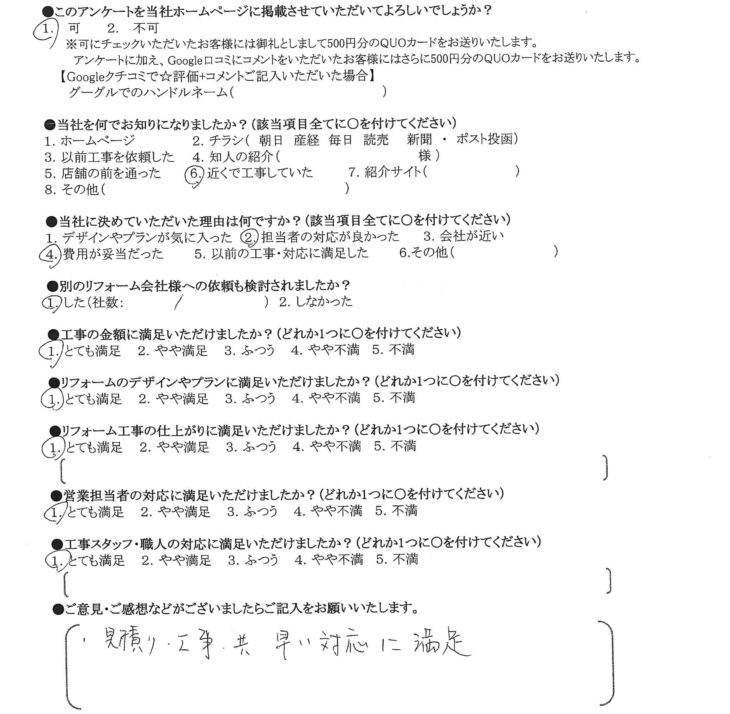 リフォーム工事の仕上がりに満足いただけましたか?