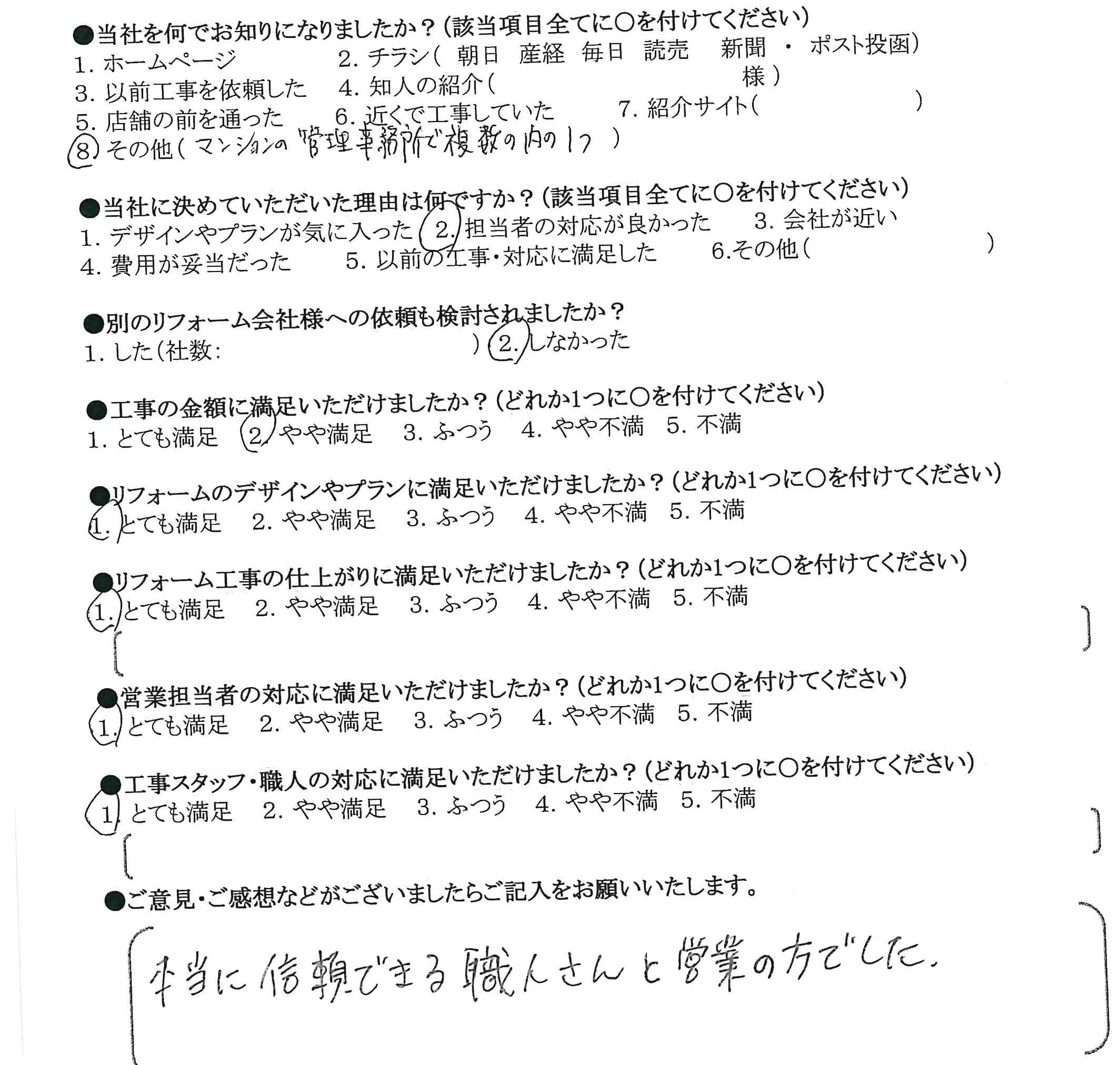 リフォーム工事の仕上がりに満足いただけましたか?