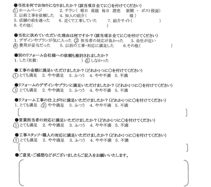 リフォーム工事の仕上がりに満足いただけましたか?