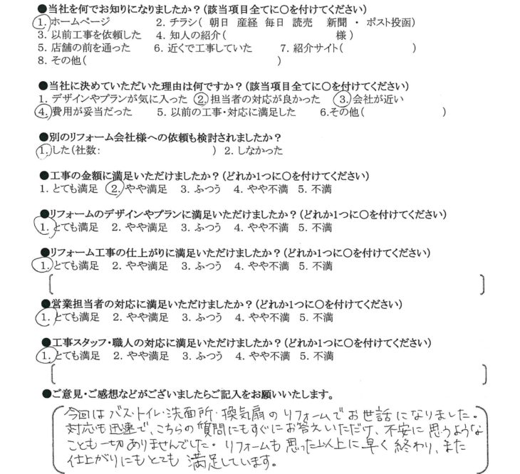 リフォーム工事の仕上がりに満足いただけましたか?