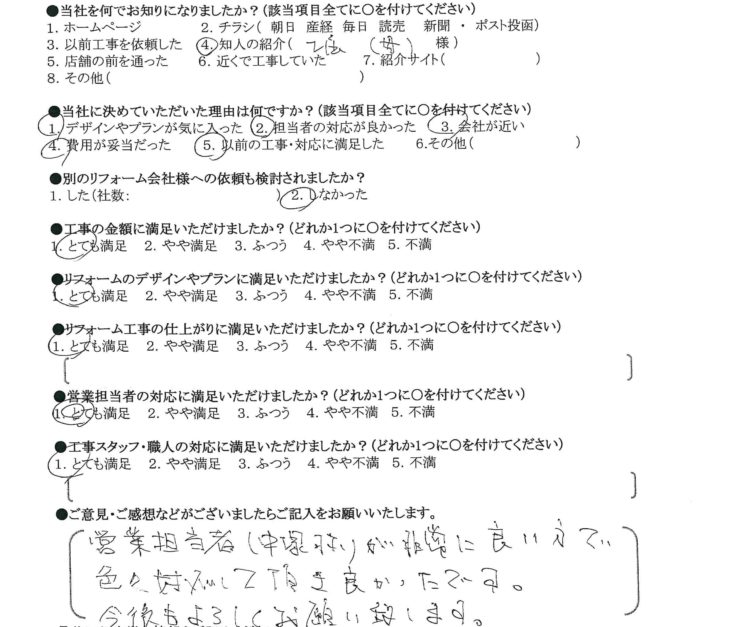 リフォーム工事の仕上がりに満足いただけましたか?
