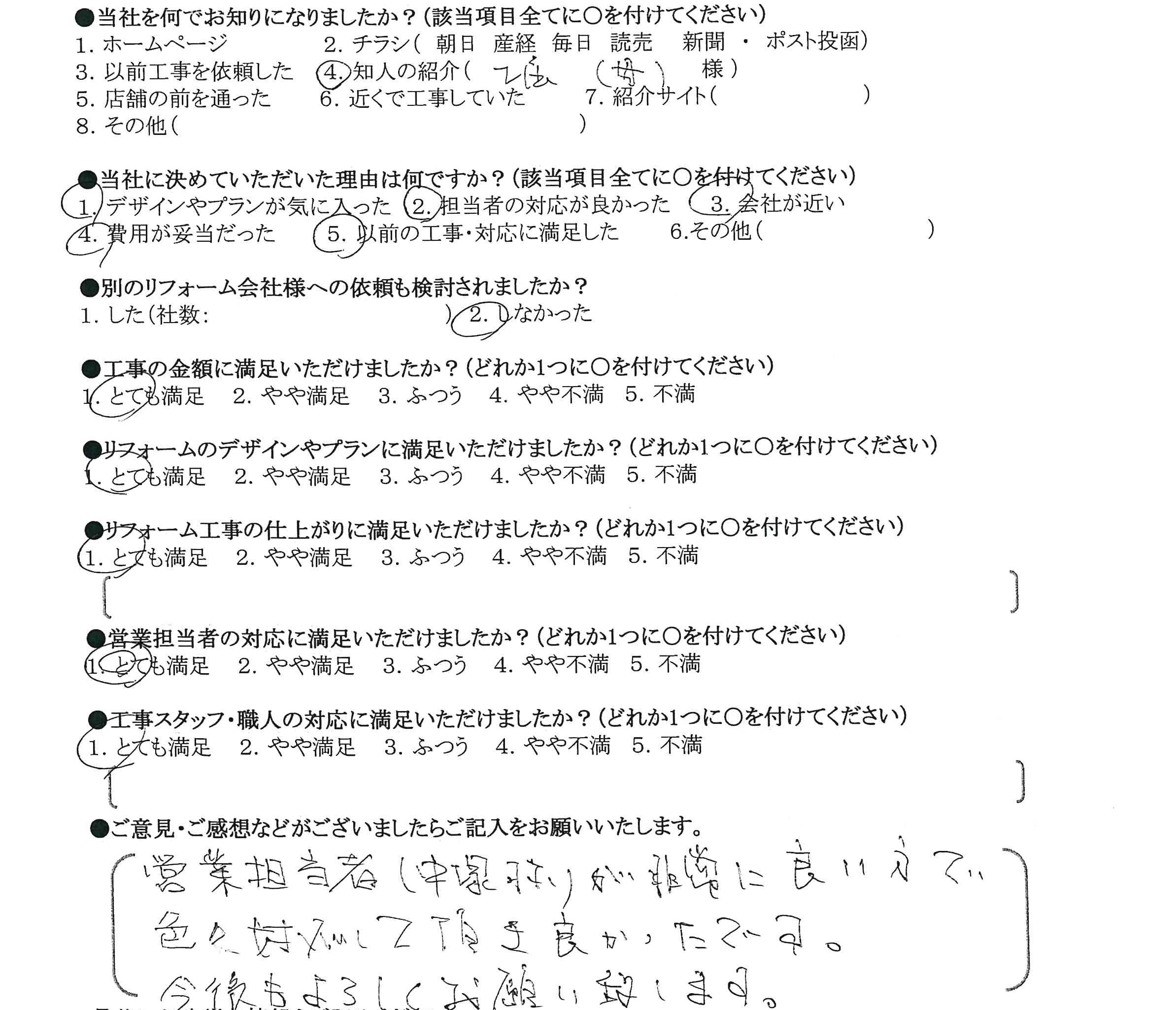 費用が妥当だった。以前の工事・対応に満足した。