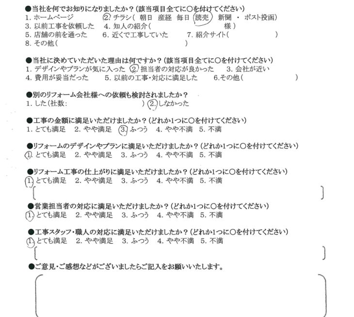リフォーム工事の仕上がりに満足いただけましたか?
