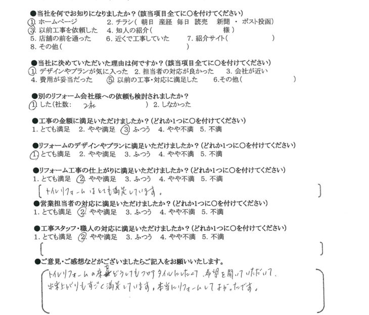 HOMEお客様の声門真市 M様邸 TOTO ピュアレストQR・アプリコット フロアタイル貼り工事 Panasonic 洗濯機水栓 CB-L6 門真市 M様邸 TOTO ピュアレストQR・アプリコット フロアタイル貼り工事 Panasonic 洗濯機水栓 CB-L6 当社に決めていただいた理由は何ですか? デザインやプランが気に入った。以前の工事・対応に満足した。 リフォームのデザインやプランに満足いただけましたか? とても満足 リフォーム工事の仕上がりに満足いただけましたか? やや満足 営業担当者の対応に満足いただけましたか? やや満足 工事スタッフ・職人の対応に満足いただけましたか? やや満足 お客様の声一覧はこちら ライフテックについて 会社案内代表挨拶会社概要企業理念 はじめにお読みください 施工事例 施工事例一覧 戸建て マンション 全面改修 水まわり 洗面 キッチン 浴室 トイレ 内装 間取り変更 洋室改修 和室改修 その他 バルコニー・ベランダ 玄関 外壁・屋根 窓・サッシ お客様の声 お客様の声一覧 イベント情報 イベント情報一覧 カテゴリーなし お役立ち情報 お役立ちブログ 現場ブログ よくあるご質問 リフォームの流れ LINEで簡単見積もり ユニットバスキャンペーン 玄関ドアリフォーム 在来工法とカバー工法の違いをわかりやすく解説します 建具・家具工事 補修工事(リペア) 荷揚げ(揚重)工事 お問い合わせ お問い合わせ 無料お見積もり 資料請求 CONTACTお問い合わせ トップへ戻る 会社案内 会社案内代表挨拶会社概要企業理念 はじめにお読みください 施工事例 施工事例一覧 戸建て マンション 全面改修 水まわり 洗面 キッチン 浴室 トイレ 内装 間取り変更 洋室改修 和室改修 その他 バルコニー・ベランダ 玄関 外壁・屋根 窓・サッシ お客様の声 お客様の声一覧 お得なリフォーム情報 価格表 一覧お得なキッチンお得なトイレお得なお風呂お得な洗面化粧台 お役立ち情報 お役立ちブログ現場ブログよくあるご質問リフォームの流れLINEで簡単見積もりユニットバスキャンペーン玄関ドアリフォーム 在来工法とカバー工法の違いをわかりやすく解説します建具・家具工事補修工事(リペア)荷揚げ(揚重)工事 お問い合わせ お問い合わせ無料お見積もり資料請求 Copyright © 2018 ライフテック All Rights Reserved.