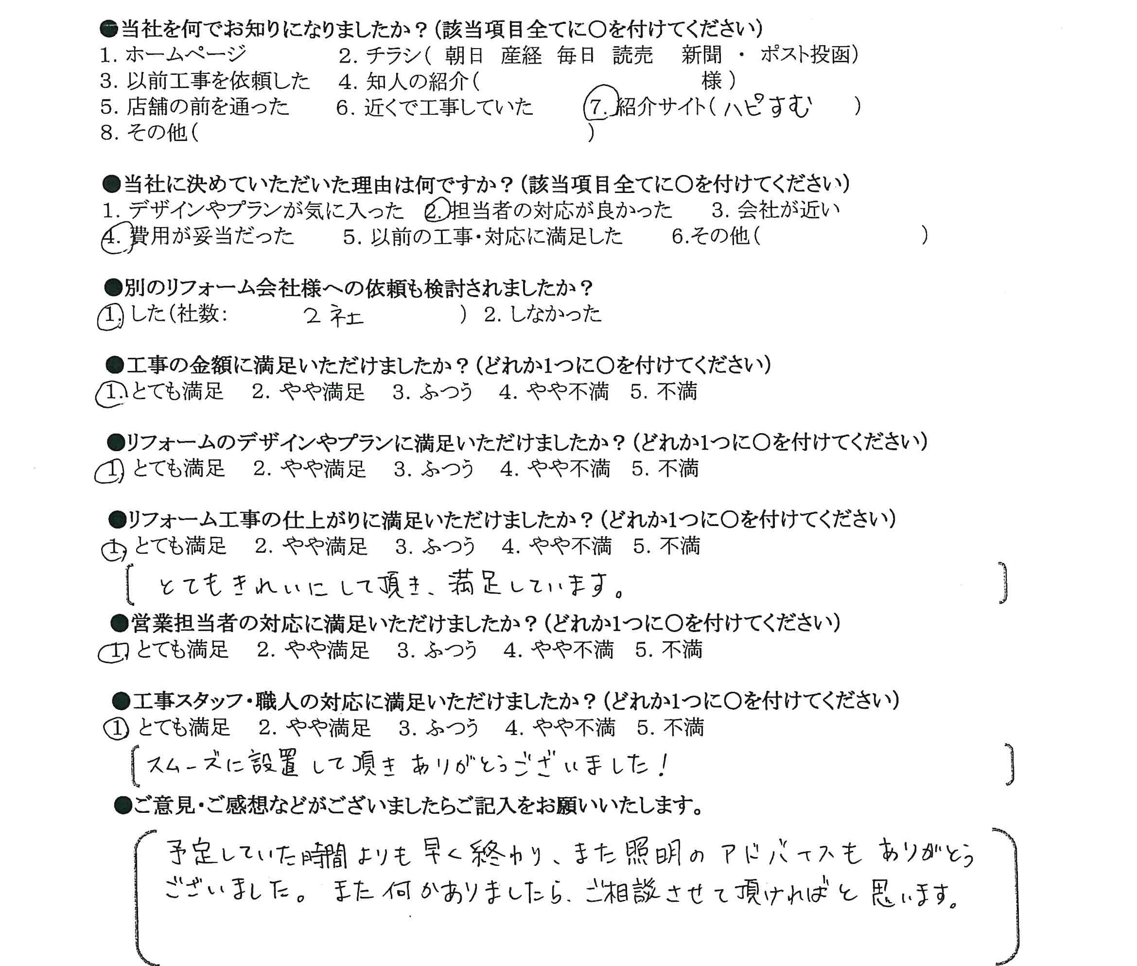 リフォーム工事の仕上がりに満足いただけましたか?